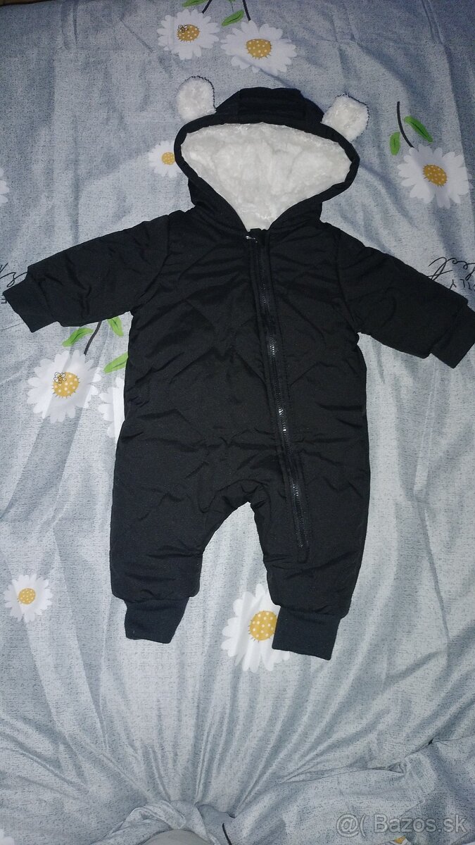 Zimný overal s kapucňou na ktorej sú uška, 3-6 mesačné bábätko