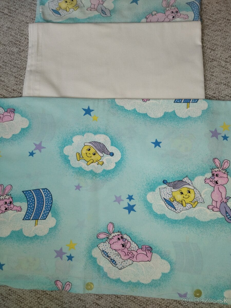 Po 5 eur predám bavlnené detské súpravy posteľných obliečok: biela s vyšívaným vankúšom, tyrkysová a ružovo-fialková s detským motívom. Predám aj penovú podložku na kúpanie: 2 eurá, vatelinovy paplón: 5 eur a látky s detským motívom po 3 eurá. Chránič do postieľky - po celom obvode: 10 eur