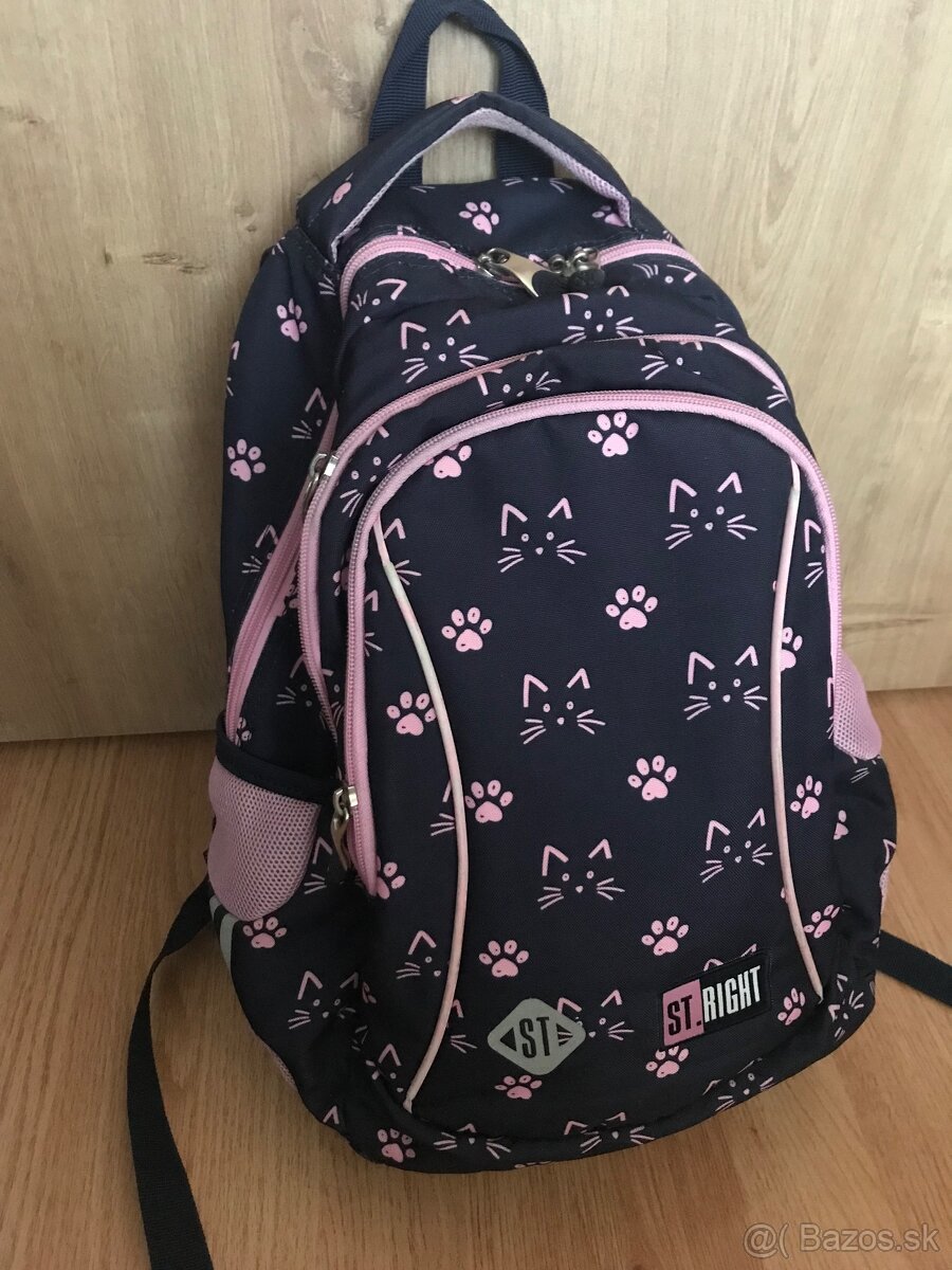 Predám dievčenský školský batoh. Nosený, zachovalý. Rozmery - výška cca 39cm, šírka 29cm, hľbka 19cm. V prípade záujmu priložím vrecko a/alebo školské dosky. Posielam výhradne poštou, prípadne osobný odber Bratislava. KURIÉROM NIE!