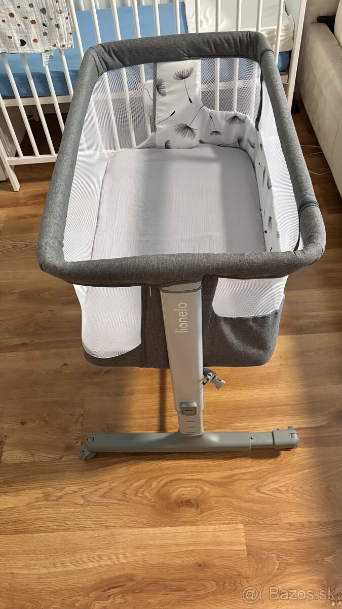 Možnosť nastavenia výšky dna umožňuje pohodlný prístup k dieťaťu. Bočné dvierka umožnia dieťaťu voľný priechod von z postieľky.