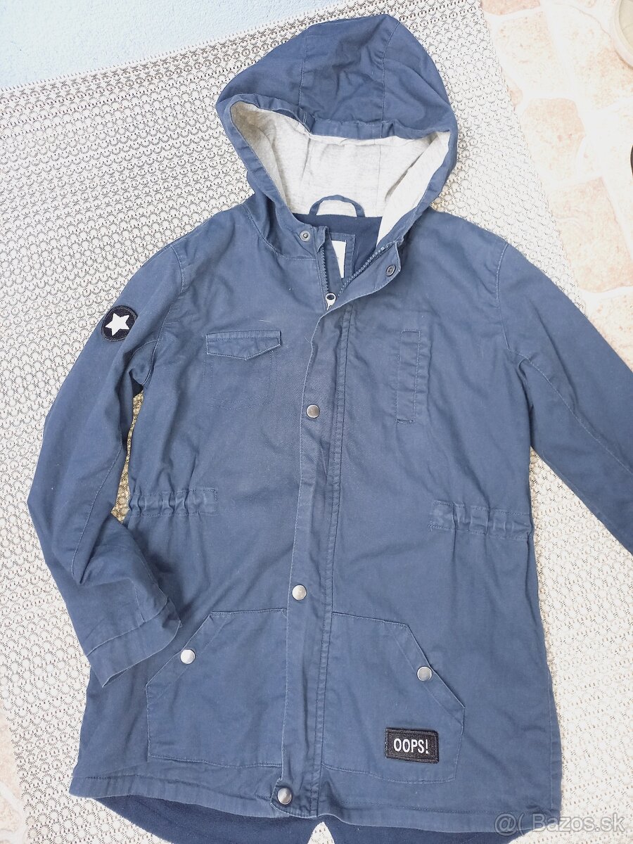Zachovalý praktický kabátik/bunda na prechodné obdobie, flísová podšívka, zvnútra sťahovanie v páse, 2 vrecká.