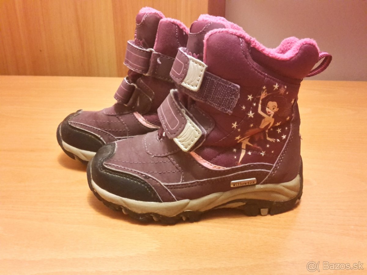 Predám dievčenské čižmy na zimu Willowtex, nosené 1 sezónu, nepremokavé, vo výbornom stave, vzadu na ľavej topánke trošku odretá guma, viď na foto, veľkosť 25
