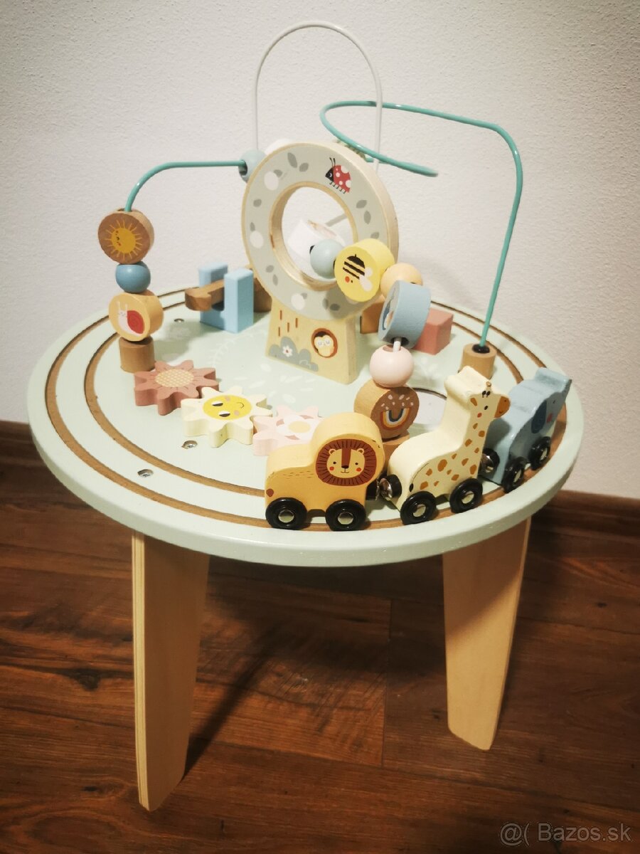 Skvelá interaktívna hračka pre rozvoj dieťaťa, rozvíja jemnú motoriku dieťaťa. Drevená konštrukcia + drevené hračky. Deti vyrástli, už sa s tym nehrajú, je v super stave bez poškodenia.