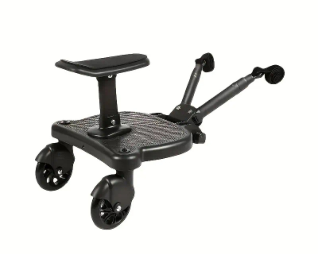 Jednoduchá manipulácia: Kolieska s odpružením zaisťujú hladkú jazdu a doska sa dá ľahko zložiť alebo zavesiť na rukoväť kočíka.