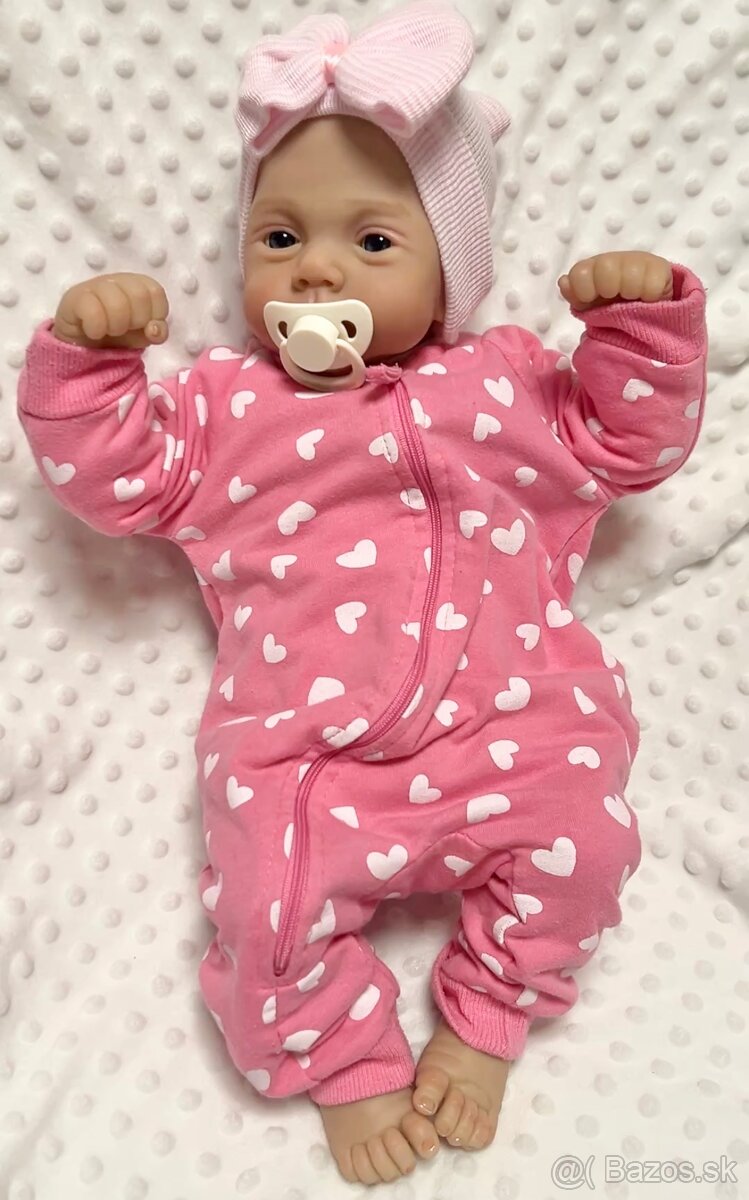 Posielam oblečenú ako na fotke, pribalím jej leginky, nahradný dudlík a rodný list .Má na sebe body aj plienku.