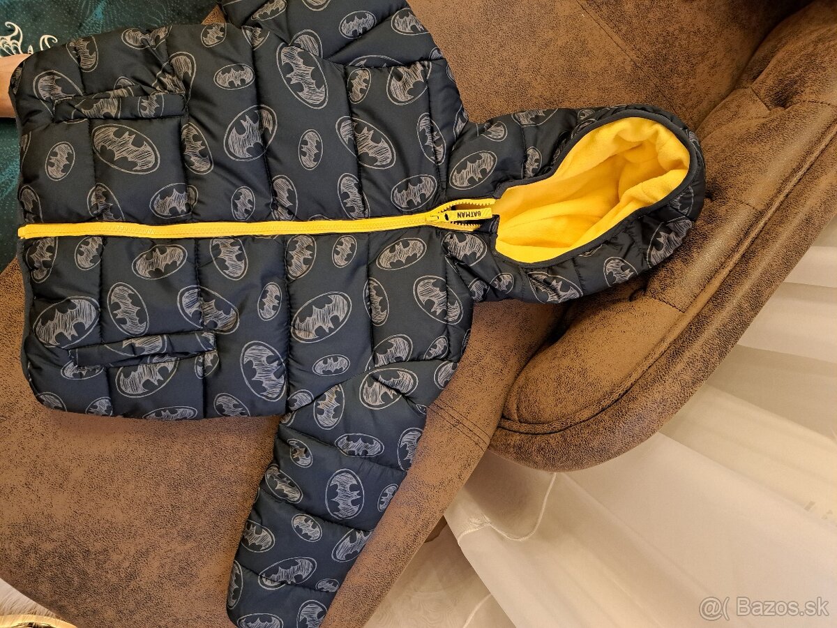 Oblečená raz na chvíľu. Tmavosivá, Batman. Podľa mňa skôr 110/116.