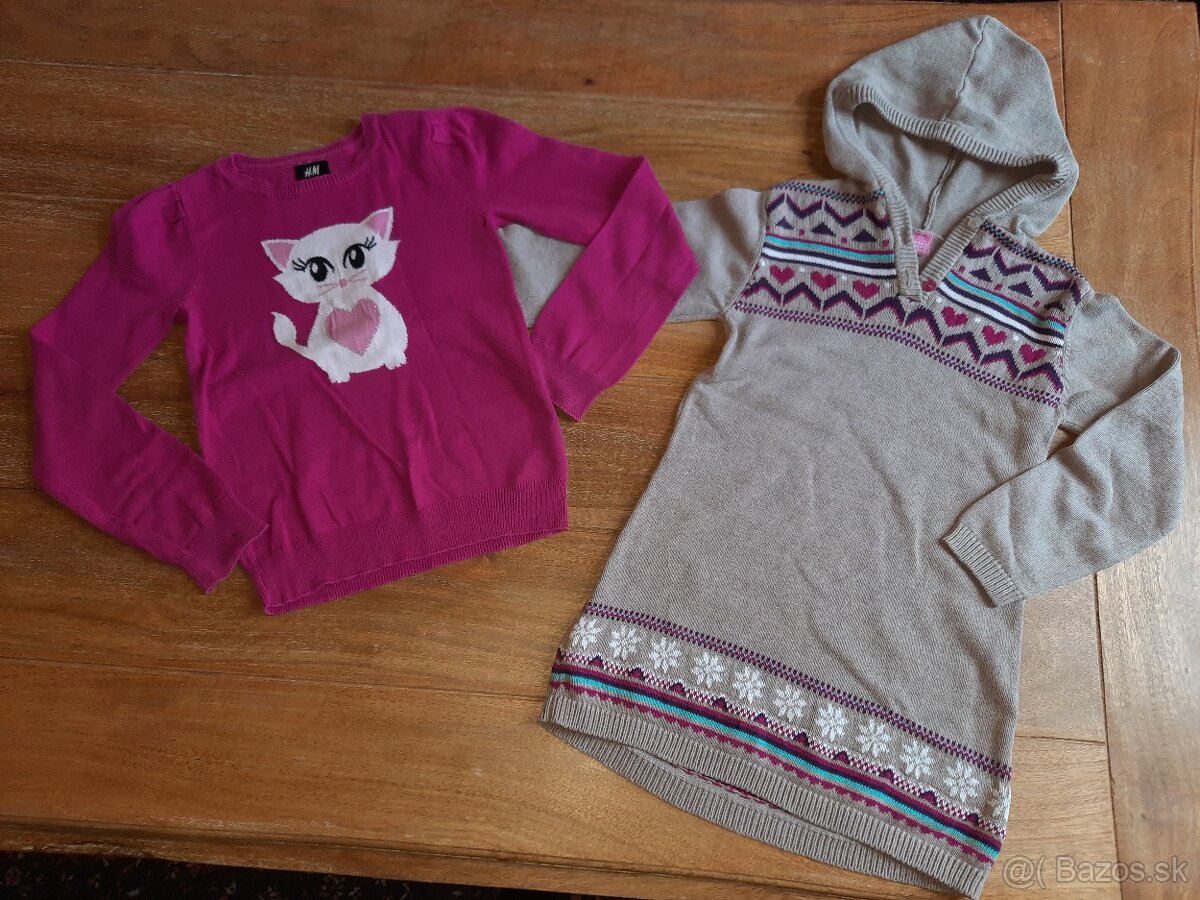 Sukna, saty, mikinove saty, 2x svetrik, komplet pyzamko, rifle, 2x nohavice, 4x tricko dlhy rukav, tricko kratky rukav. Mix znaciek: H&M, Next, Primigi, DopoDopo,… Vecicky su minimalne nosene, niektore vobec.