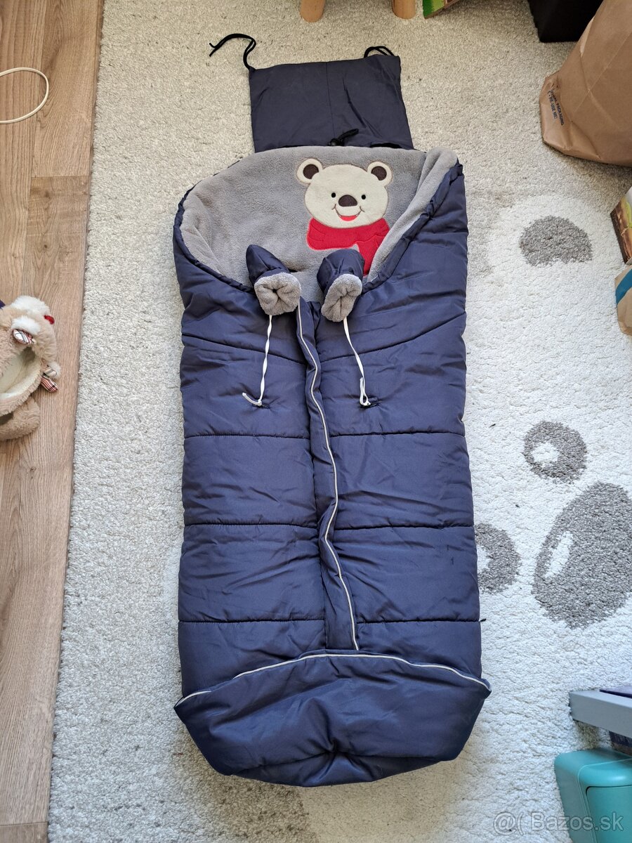 Predám skvelý a teplý zimný fusak používaný jednu sezónu. Sú k nemu aj rukavičky. Má len jednu chybičku krásy. Vzadu zašívaný otvor na prevlečenie popruhov (viď foto). Rozmer 102x45cm
