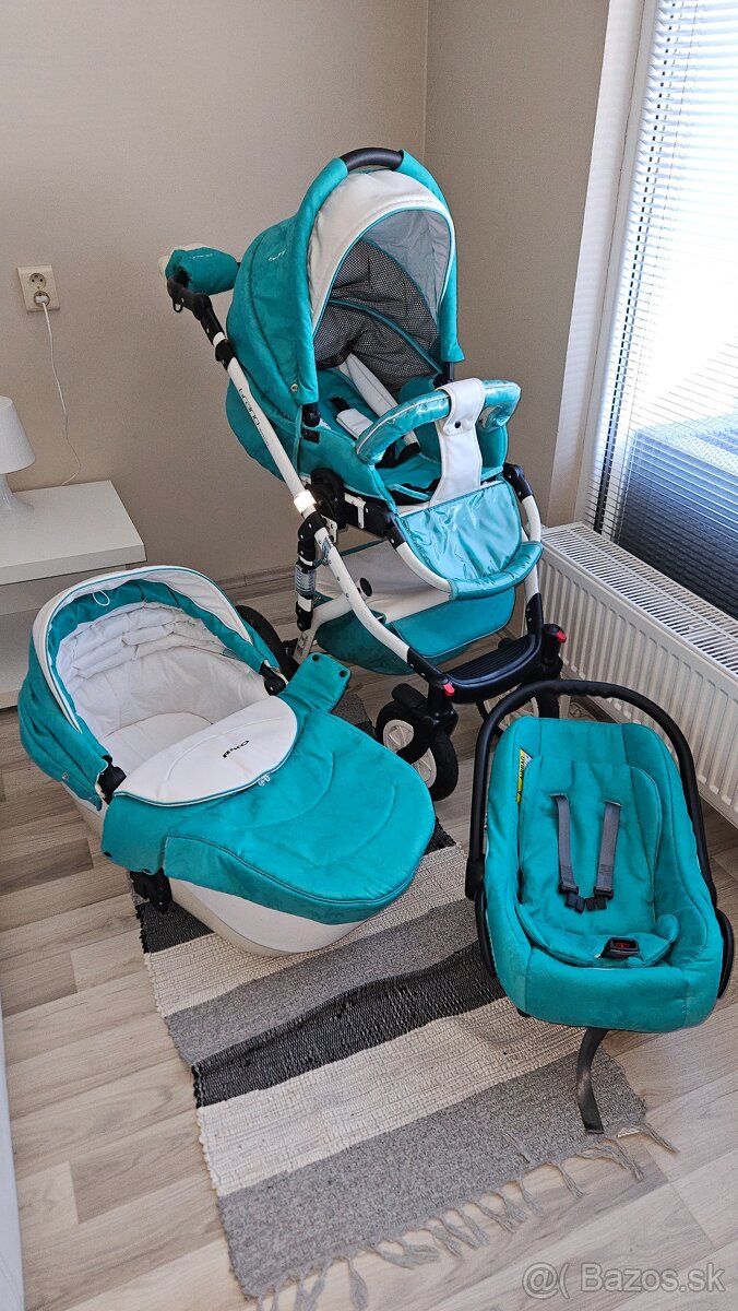 Predám trojkombináciu kočíka Riko Brano Ecco v bielo tyrkysovej farbe aj s príslušenstvom. Po jednom dieťati. Len osobný odber.