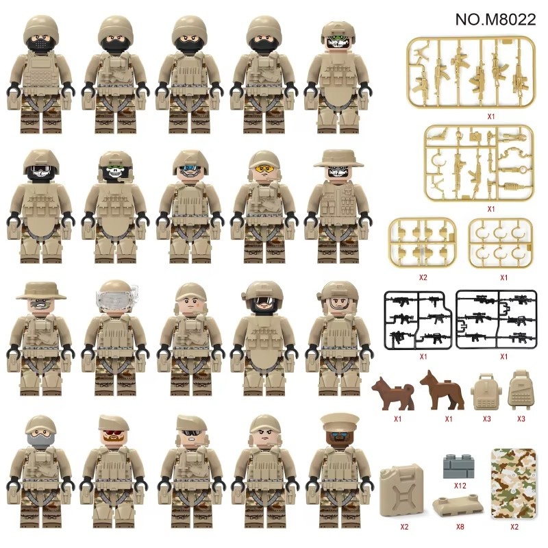 Ponukam sadu 20 ks vojakou SWAT. Ide o novu sadu. Kazda postavicka je zvlasz zabalena v zapecatenom sacku so zbranami. Velke mnozstvo prislusenstva: zbrane, stity, psy, zabarani. Plne kompatibilne s legom. Cena 28€.