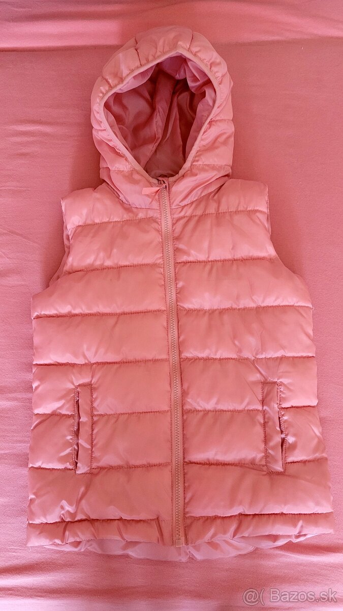 Predám presívanú vestu Sinsay-veľ.140. Nová. Kapucňa, Zapínanie na zips, Dve vrecká, Prešívaná podšívka, Hladká podšívka-
