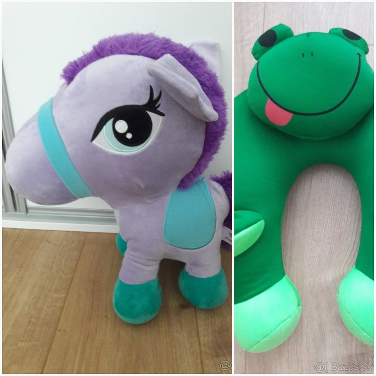 Novy nehrany "ocinko" nosí pri každej návšteve a dcera sa s nimi nehra.vyska cca 30cm. Somarik a kravicka su zvukove plysaky.8€/ks. cestovny vankusik žabka je vacsi ako bezne vankusiky 37 x 34 takze ponuka vacsi komfort.dostala dcerka ale mame uz 2 v aute.mozne pranie v pracke; cena 8€. Kontaktovat mailom pripadne volat nie sms.