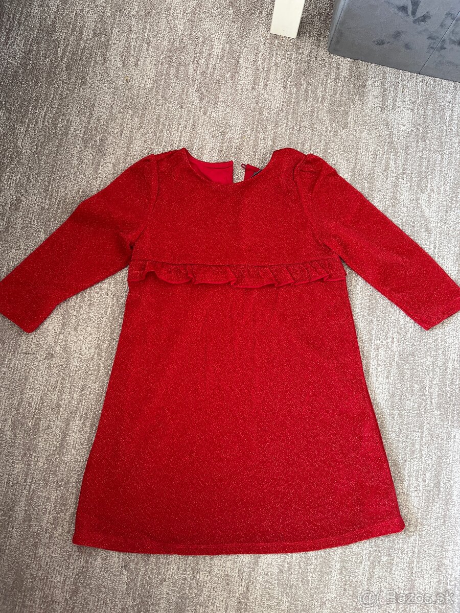 Červené šaty - [20.12. 2025]Predám krásne velúrové červené vianočné šaty s dlhým rukávom, veľkosť 110/116, málo nosené