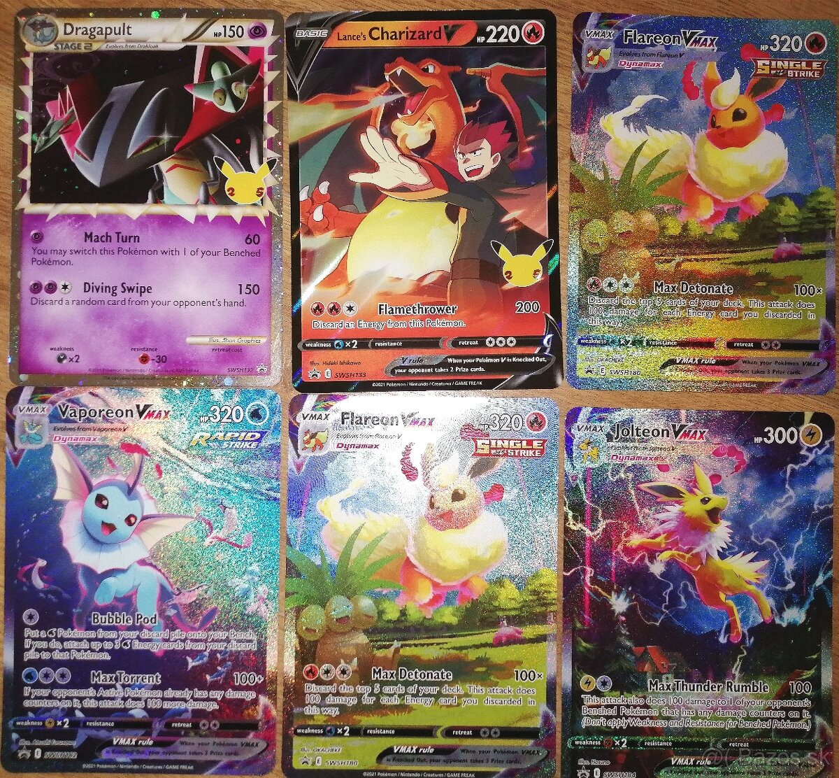 Vaporeon Vmax, Flareon Vmax, Jolteon Vmax - 15 eur / kus,