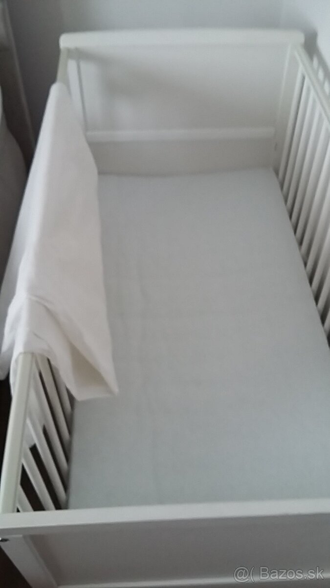 Predam postielku vo velmi dobrom stave. Bezne opotrebenie. Vyska lozka nastavitelna (vid foto). Po odobrati bocnych stran je mozne pouzivat postielku ako detsku postel. V cene matrac s oblieckou. Pozdravujem.