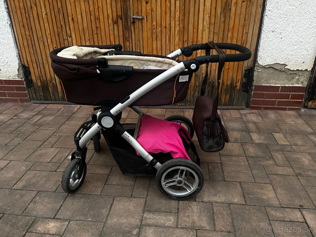 Po dvoch deťoch, s bežnými známkami používania (trochu škrabance na podvozku, kolesách a úchytke). Nafukovacie, otočné, odpružené, odnímateľné kolesá vhodné aj do nár ...