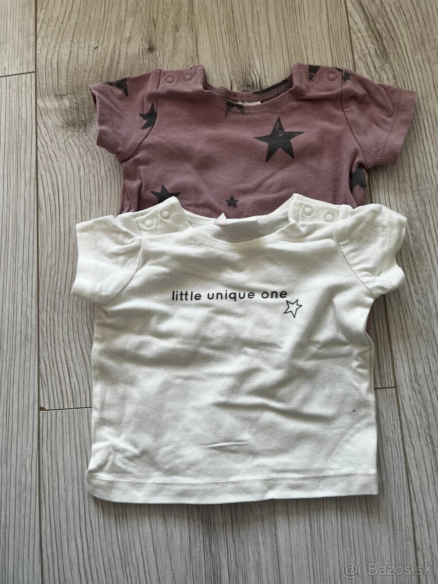 predám dve krátko rukávové tričká (biele s nápisom/fialové s hviezdičkami) značky Next, veľkosť: 56