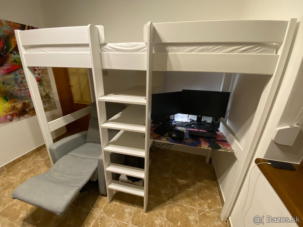 Ponúkam na predaj detskú poschodovú posteľ s matracom, vyrobenú na mieru z dreva vo veľmi dobrom stave, rozmery: