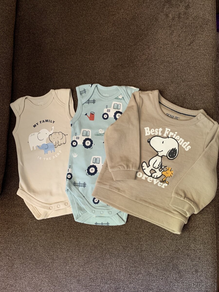 Nenosené, iba oprané. Tielkové body veľkosť 56 a 62. Mikina veľkosť 68.