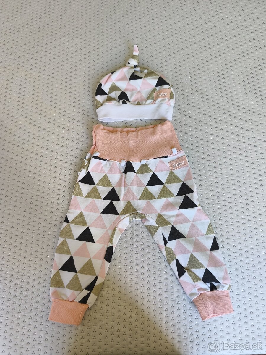 Dievčenské nohavice+ čiapka, značky Jakor, Slovenský výrobca, veľkosť 80. Materiál:bavlna. Nohavice majú užšiu gumičku v páse. Cena:2,5€