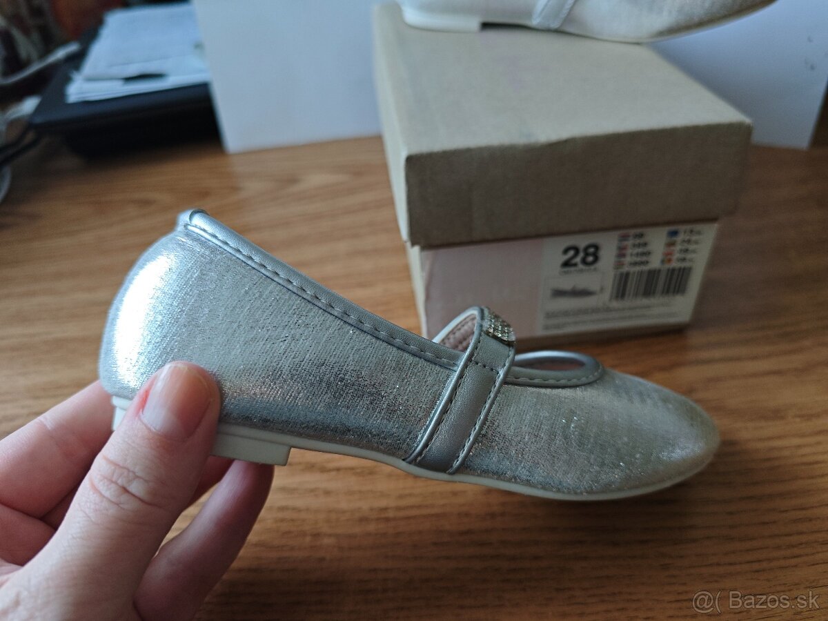 Predám detské balerínky dievčenské strieborné. Veľkosť 28. Minimum použitie. Osobný odber v Piešťanoch najlepšie alebo aj pošlem aj na adresu domov.