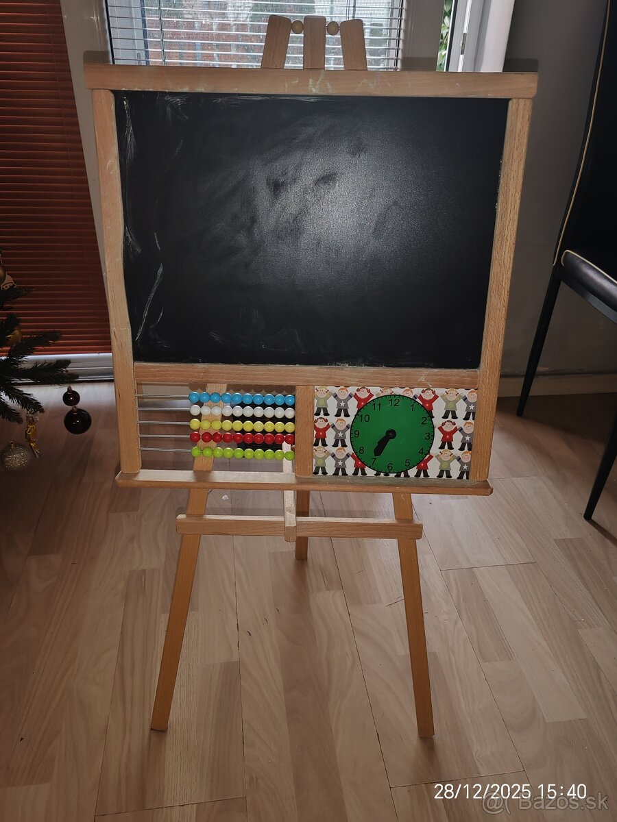 Predám detskú tabuľu na kriedy. Dcéra sa s tým hrala pár krát a vôbec nie je u nás využitá. Tabuľu predávam bez kried ☺️ na tabuli sú aj gulicky na rátanie a hodinky ☺️ Tabuľu ešte vyčistím.