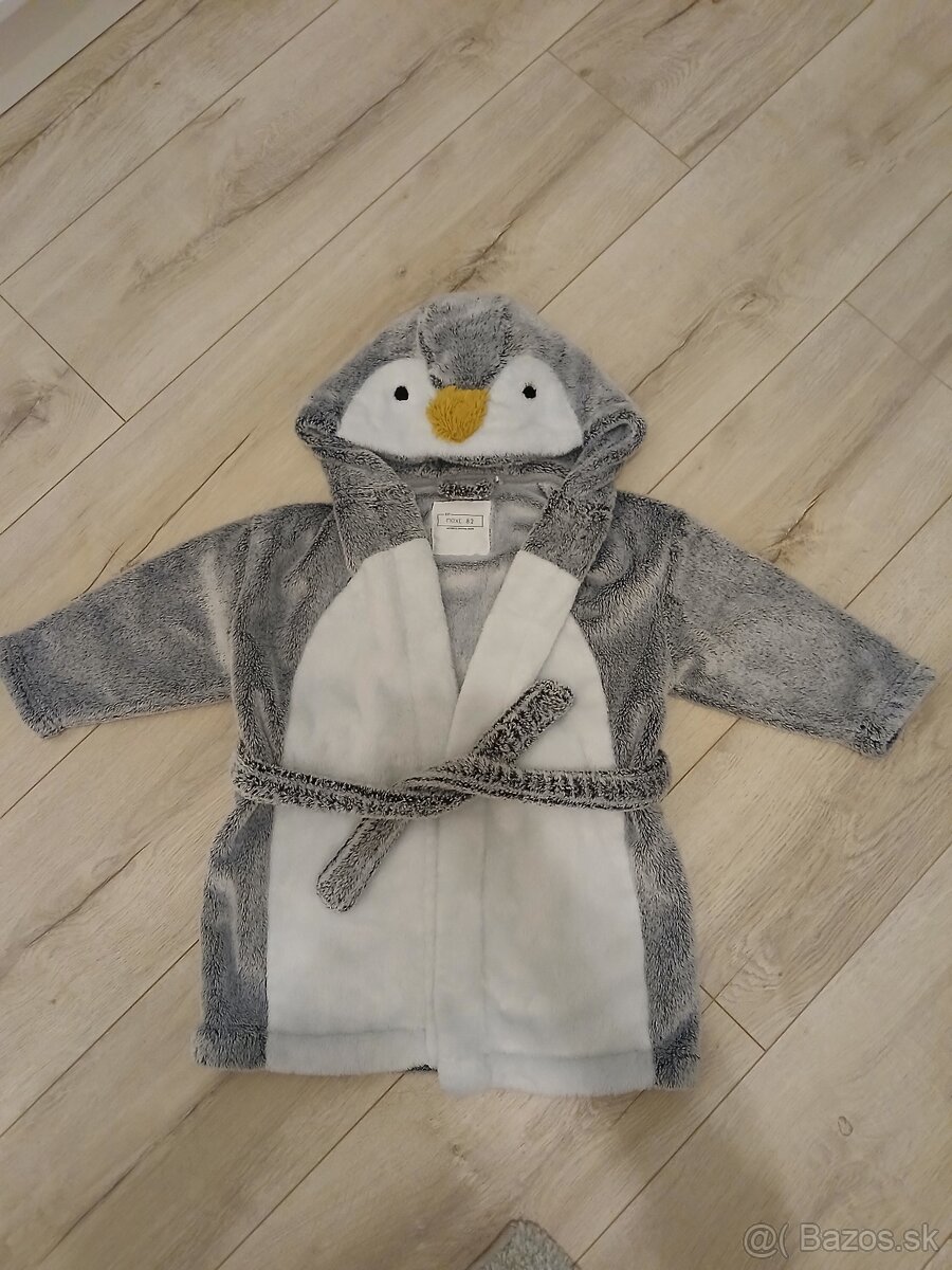 Chlapčenský REGULAR FIT-grey white penguin plyšový župan na predaj.