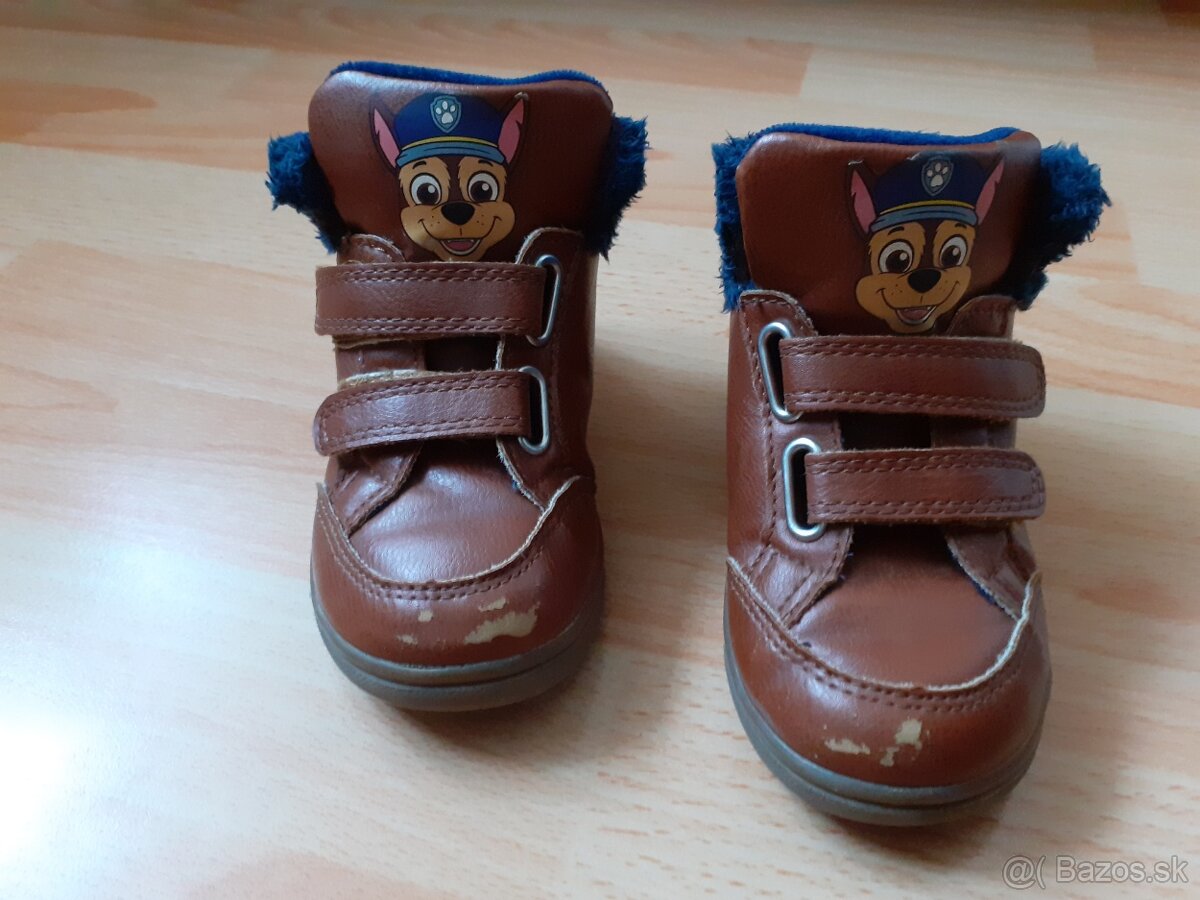 Predám zimné chlapčenské topánky (Labková patrola), č. 24 používané jednu sezónu. Sú plne funkčné, zateplené, jedinou vadou je ošúchanie vpredu. Na cene sa dohodneme, v prípade záujmu premeriam dĺžku. Na dobierku neposielam.