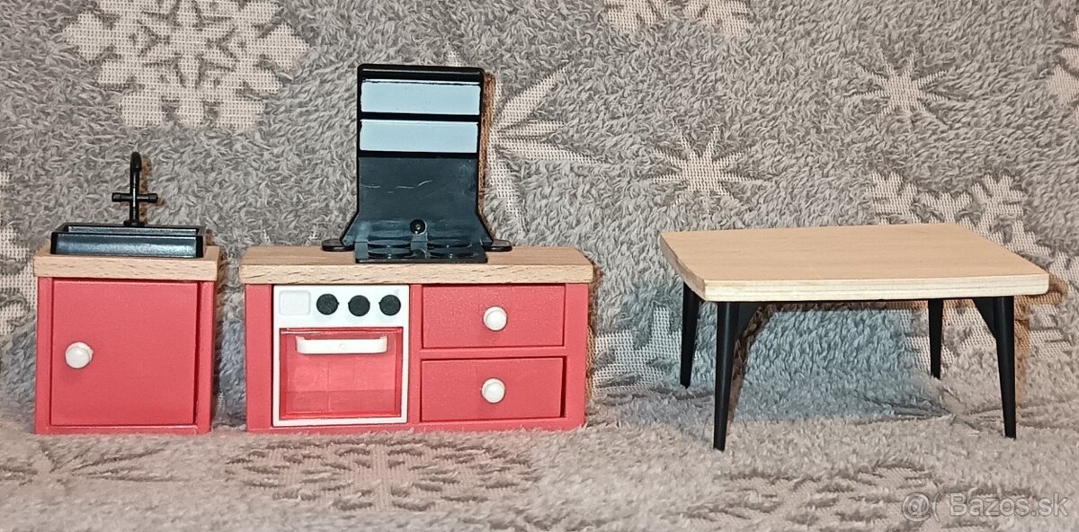 Dom obsahuje vsetky doplnky ako na foto aj funkcnu plnitelnu vyrivku pohyblivy vytah milion mini doplnkov ktore su aj od babik zozbierane.