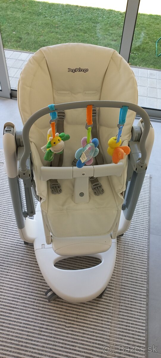 Model tatamia.Vyskovo nastavitelna,sklon sedenia nastavitelny,da sa zabrzdit,da sa na hojdacku.Odnimatelna podlozka na jedlo.Vyska noziciek sa da nastavit.Malicka chyba odlupena koza,vid foto.Zohladnene v cene.