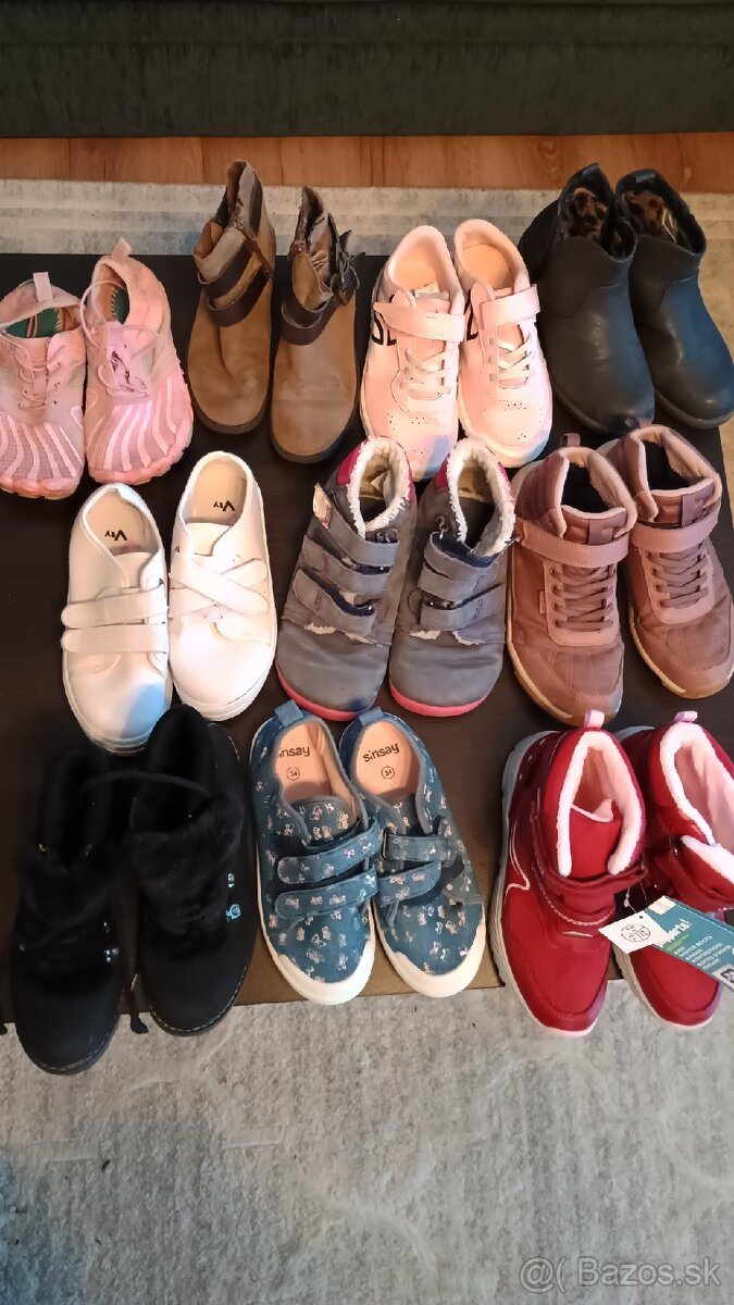 Dobrý deň. Predám dievčenské topánky, ktoré sú na fotkách. Cena je komplet za všetkých 10 párov a to 15Eur. veľkosti od 31 do 34. viď foto.