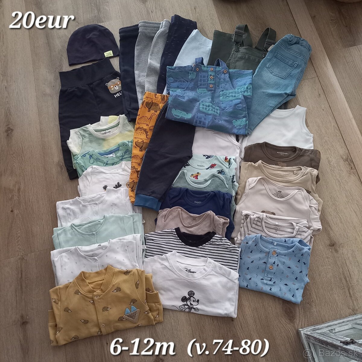 Balík oblečenia v.74-80 (6-12m). Body tielkové, body dlhý rukáv, tričko, legínky, tepláky, nohavice, pyžamko. Next, Lindex, F&F, H&M, Reserved, Name it, Pepco, Primark,...cena 20eur plus poštovné.
