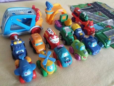 Ponúkam na predaj sadu gumených detských autíčiek zn.Tonka, všetky sú v hranom veľmi dobrom stave. Predám spolu ako celú sadu alebo aj po kusoch. Veľké modré nákladné prepravné s otváracimi a s nástupnými dverami a červený menší ťahač s odopínacou vlečkou a dvomi malými autíčkami sú po 10€, autíčiek veľkých je spolu 11 ks za 33 €, mostík so satelitom, stojam na kufre a látková podložka ako príslušenstvo spolu za 7 €.