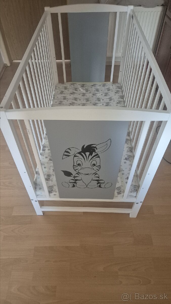 Predám detskú postielku, rozmery: 120cm x 60cm, výškovo nastaviteľná, aj s matracom je cena 100€