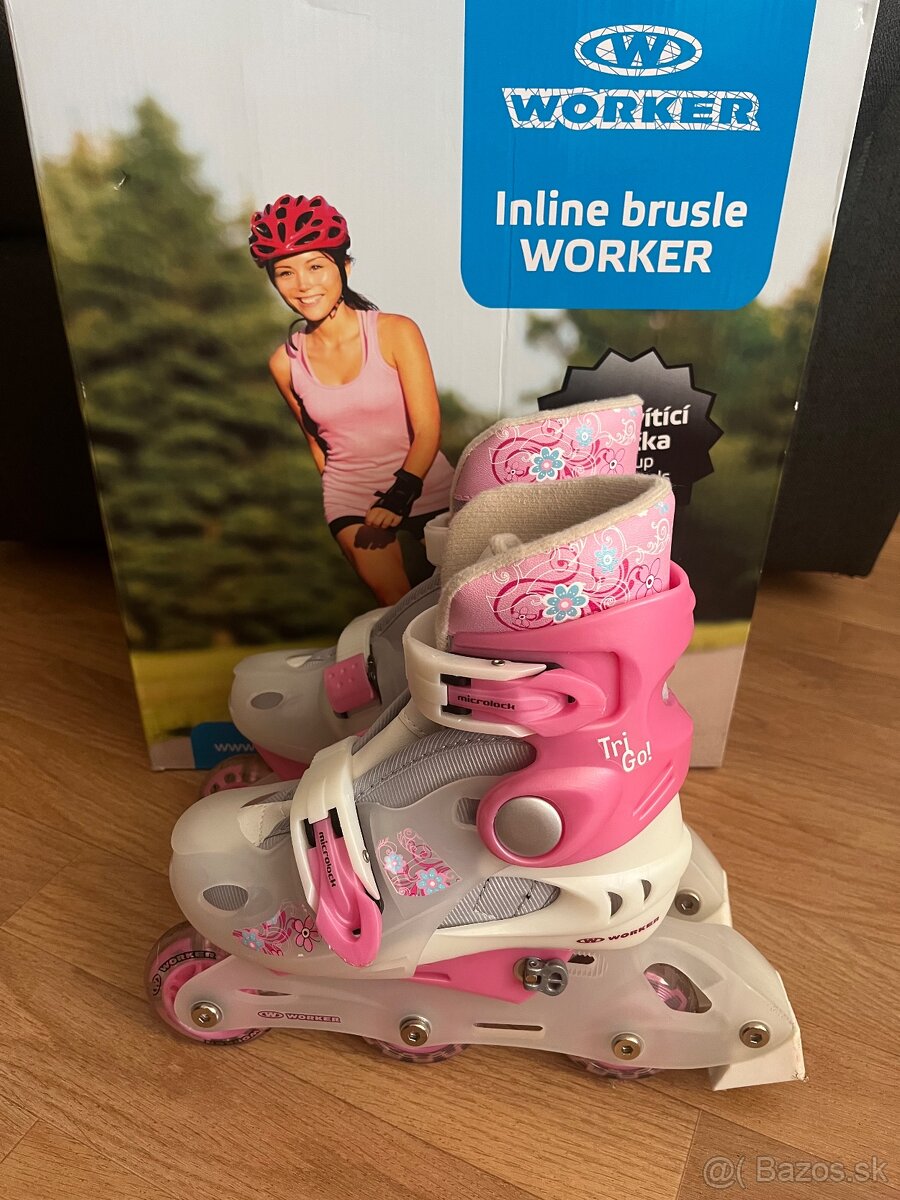 Detské kolieskové korčule WORKER Trigo Skate s anatomicky tvarovanou topánkou spĺňajú najvyššie bezpečnostné normy. Vynikajú jednoduchým nastavením veľkostí a možnosťou usporiadania koliesok tri-skate (dvojica zadných koliesok pre lepšiu stabilitu) alebo in-line (tri kolieska v rade). Upínanie korčúľ bezpečnostnými prackami MicroLock v oblasti členkov a priehlavkov zvládnu deti čoskoro sami. A Vy sa môžete spoľahnúť, že sú vďaka tomu ich nohy v inline korčuliach stabilné.