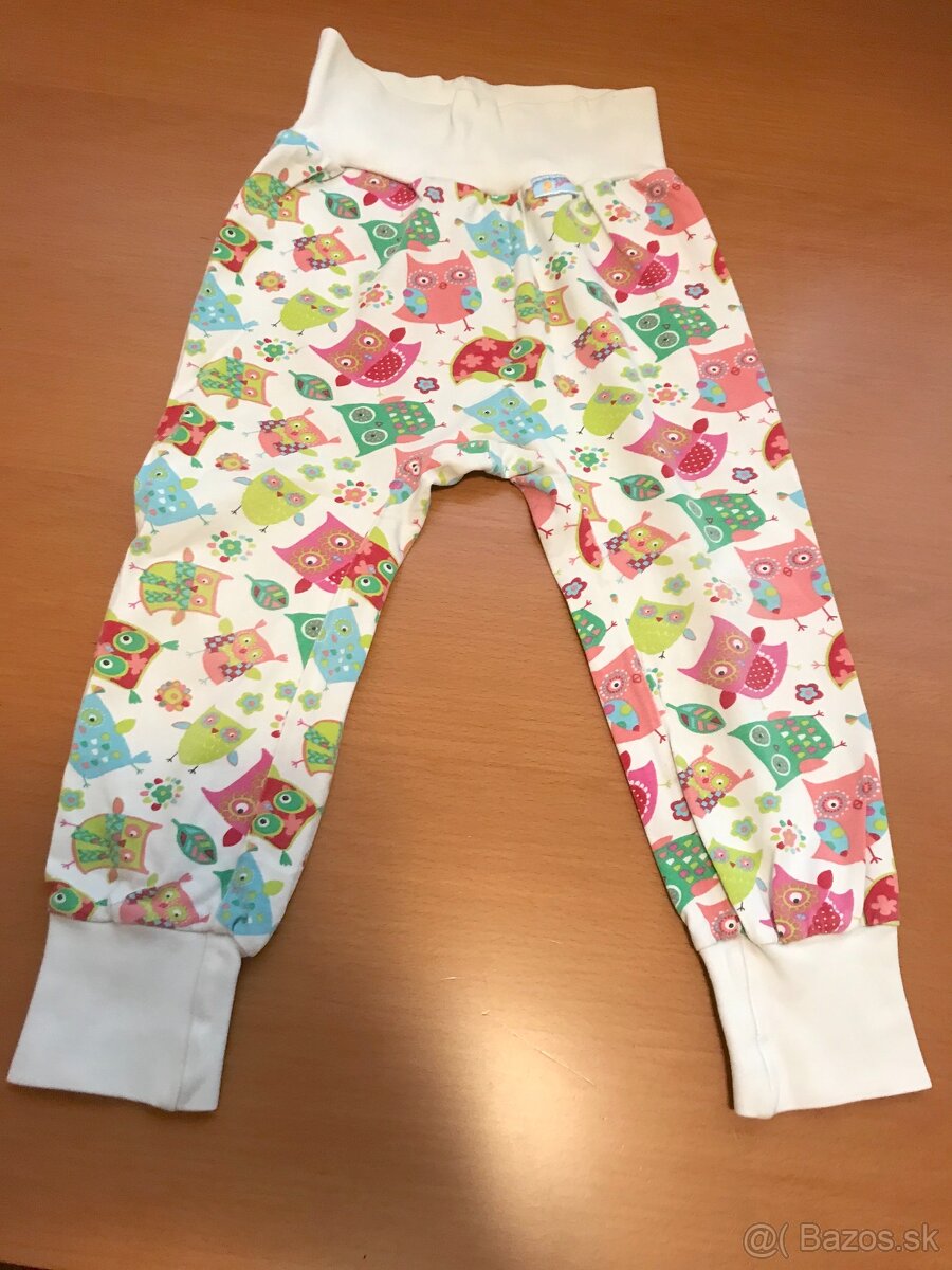 Elastické bavlnené nohavice kvalitnej českej značky Yháček - vzor farebné sovičky na krémovom podklade. Široké patenty v páse aj na nohaviciach umožňujú flexibilne prisposobiť dĺžku, takže rastú s dieťaťom. Veľ. 92. Nové stoja 15 euro.