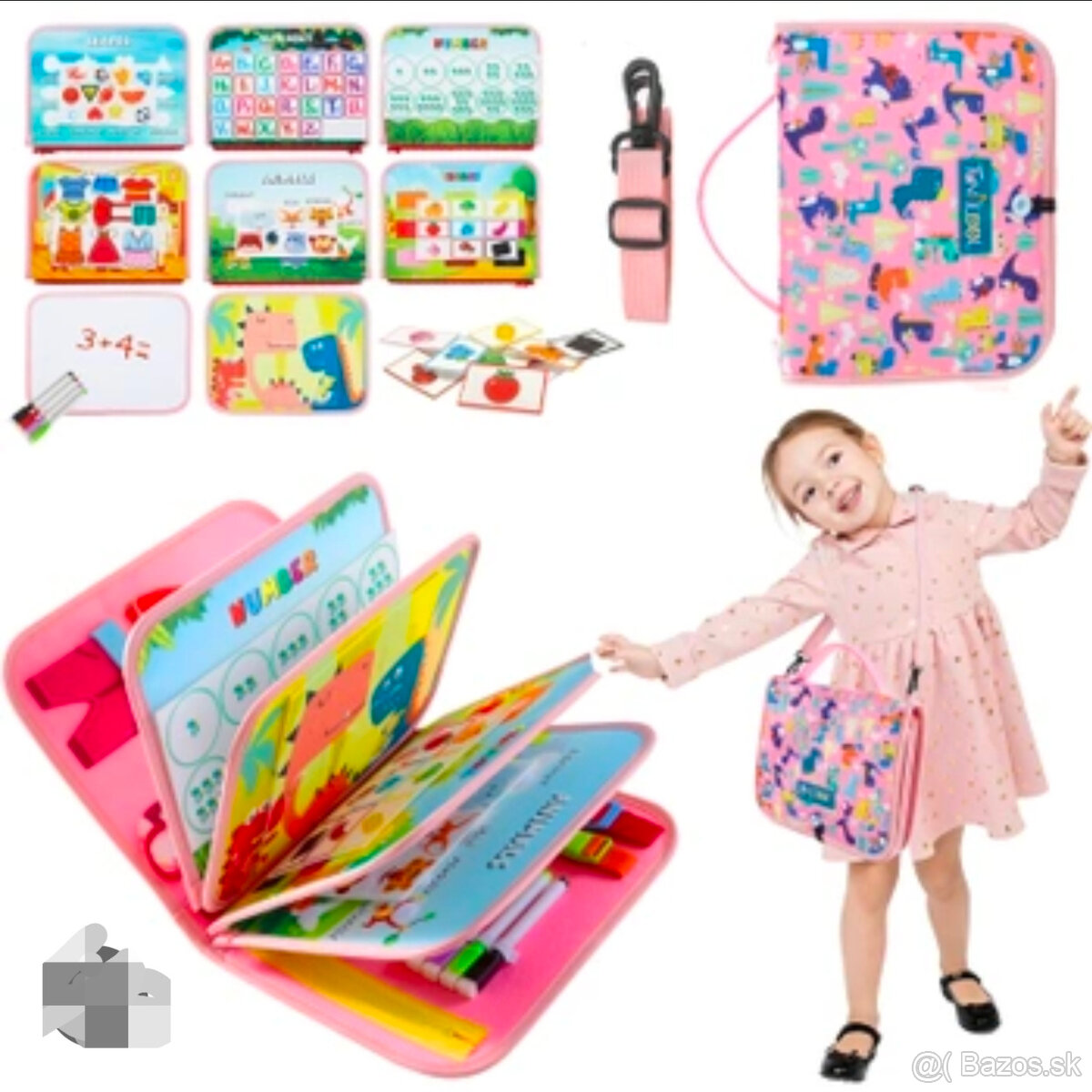 Senzorická tabuľa pre deti, známa aj ako "busy board" alebo "quiet book". Tieto hračky sú určené na rozvoj jemnej motoriky a zmyslového vnímania.