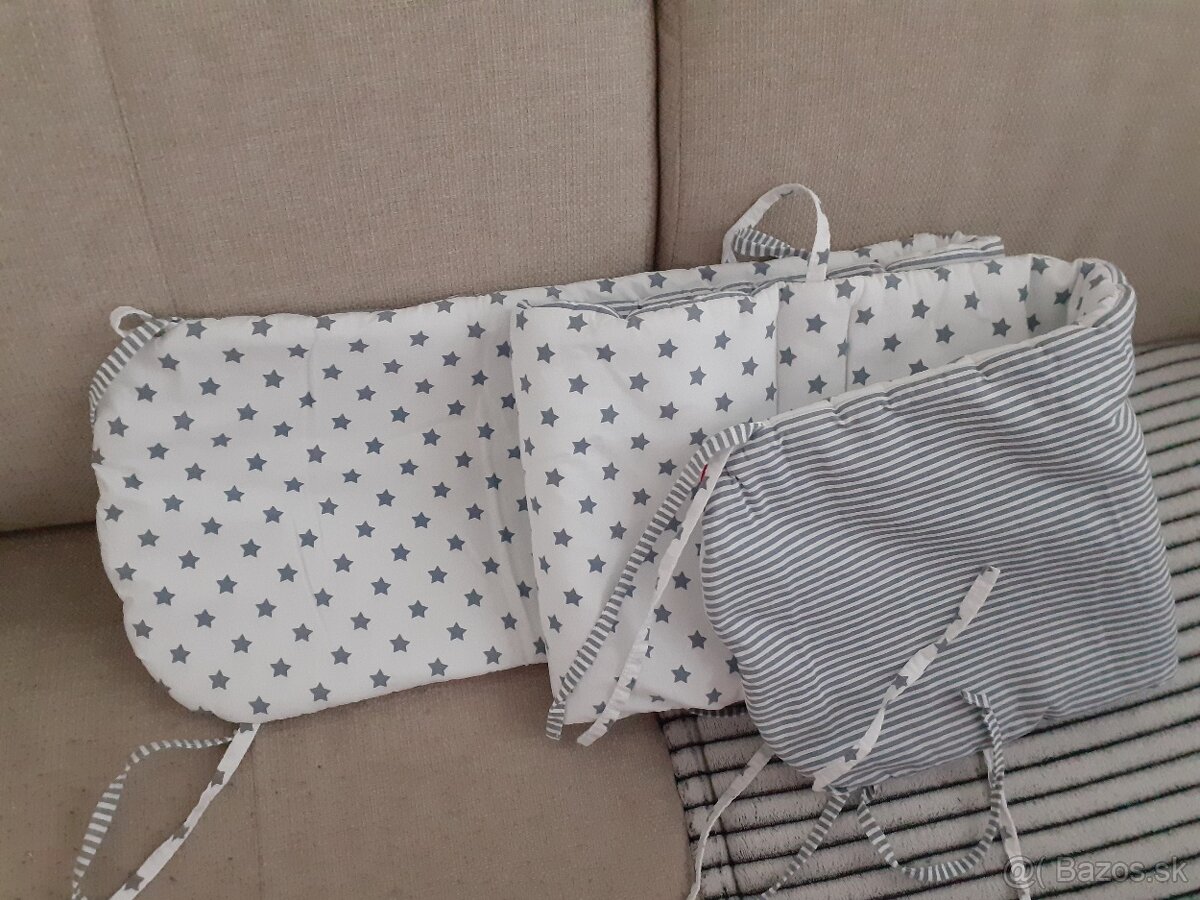 Mantinel do postieľky - [23.12. 2025]Krásny kvalitný mantinel do postieľky z bio bavlny na 8 uchytiek. Naživo farby krajšie. Je opraty, stačí vyzehlit. Rozmer 170x38 cm