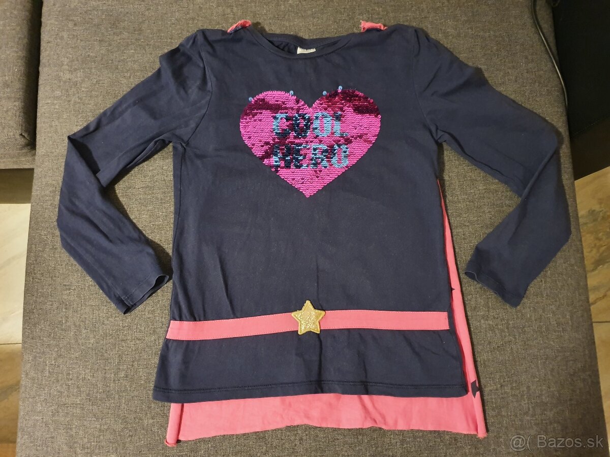 Tričko bolo nosené, ale je v dobrom stave. Obrázok je premieňací. Ku tričku je plášť pripnutý suchým zipsom, dá sa dať dole. Veľkosť 140 (9 - 10 rokov), cena 5 € + poštovné.
