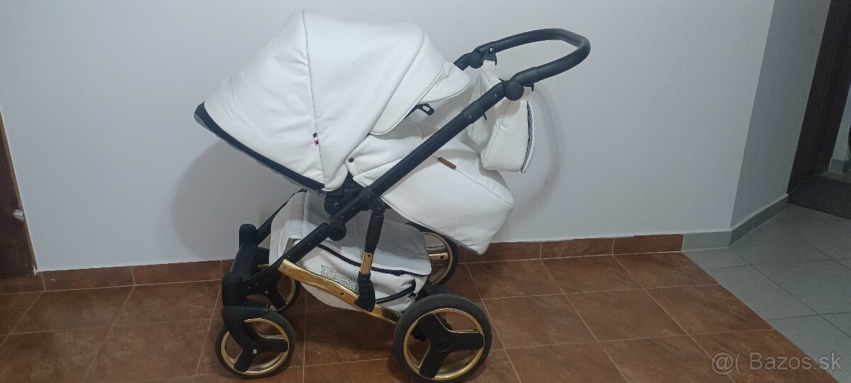 Predám detský kočiar bielej farby, ktorý sa skladá z dvoch častí:
