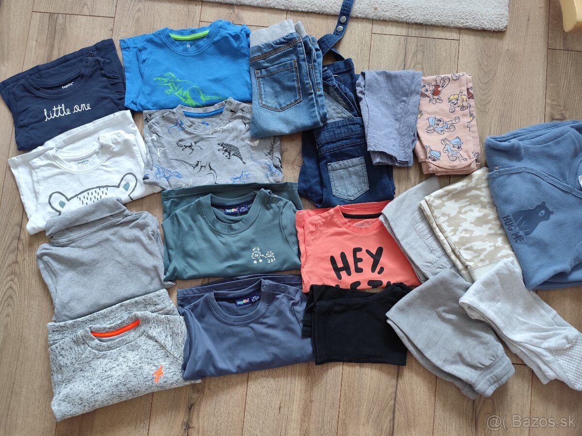 Veľký balík oblečenia pre chlapčeka, veľkosť 86/92. Obsahuje tričká s dlhým rukávom, mikinu, tepláky, nohavice, rifle, tenký overal, veci na poslednej foto darujem k balíku (na doma)