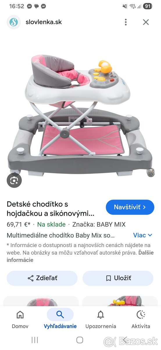 Predam detske choditko s hojdackou a silikonovymi kolieskami.