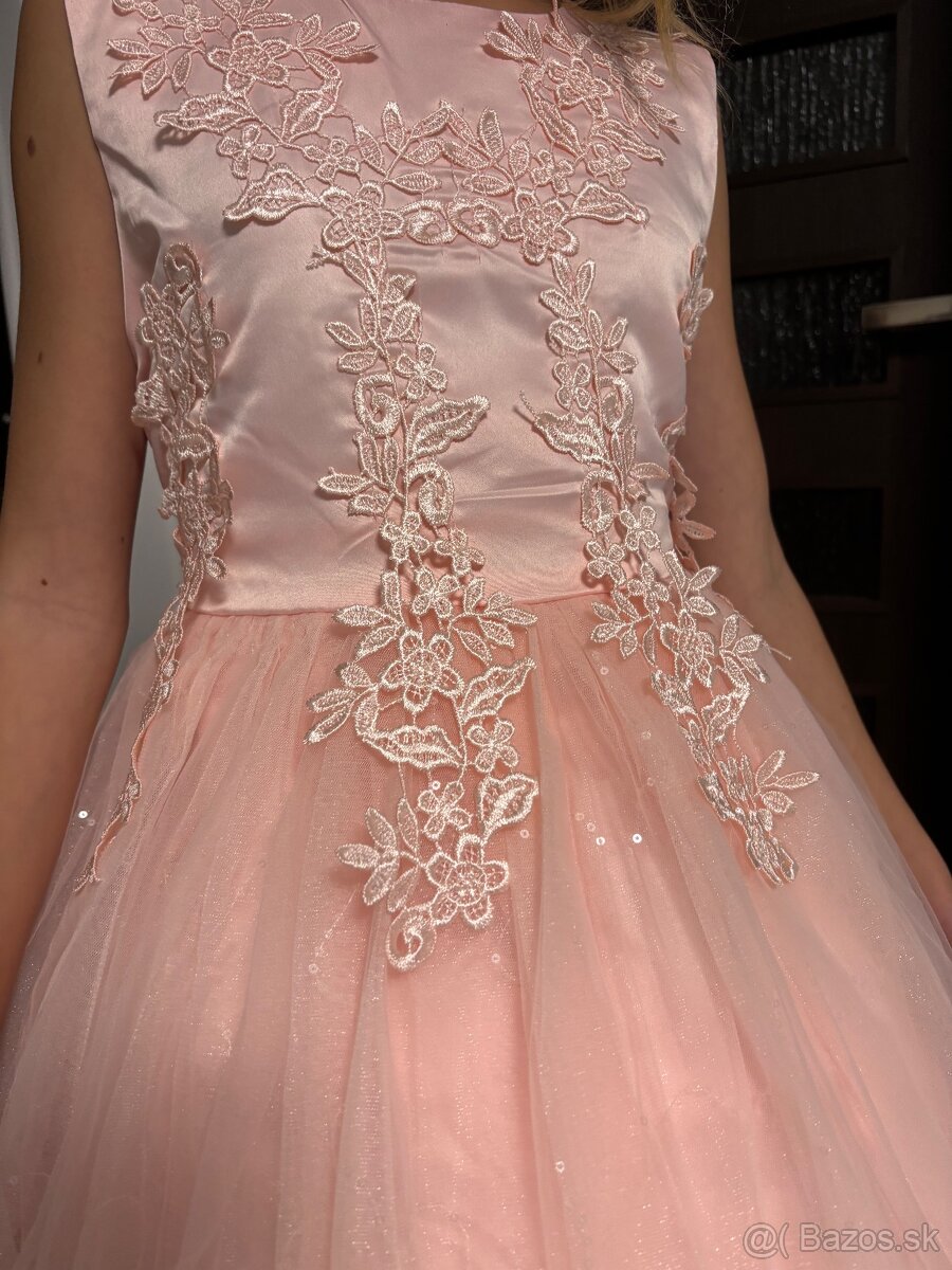 Ponúkam tieto krásne dievčenské spoločenské šaty, vhodné na svadbu či inú slávnostnú príležitosť. Šaty sú vhodné na výšku 150-155 cm, neboli použité ani raz. Šaty majú bohatú sukňu, možné je doplniť aj spodnicu.