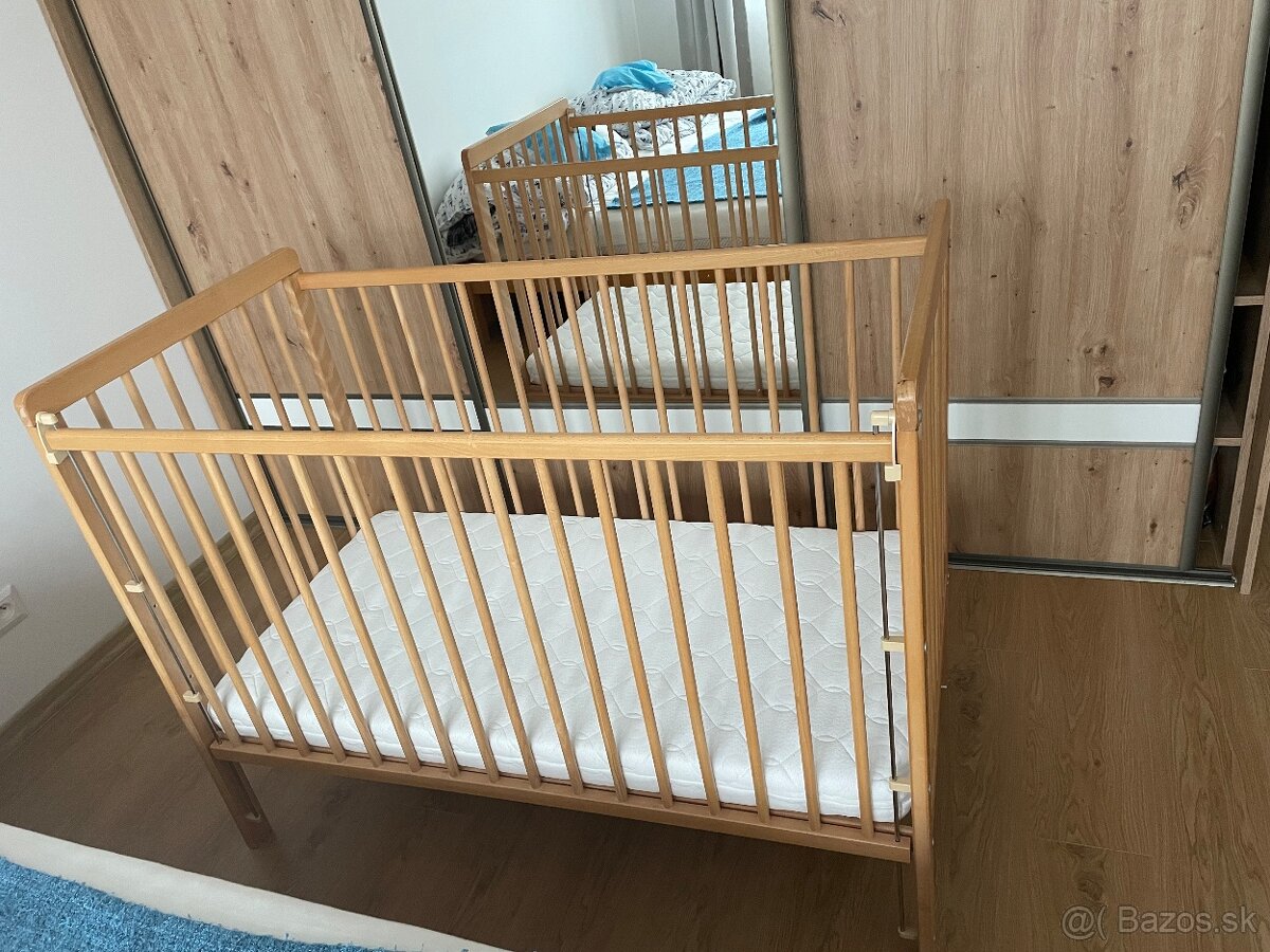 Predám klasickú detskú postieľku + matrac+ chránič matraca+ 2x plachta. Postieľka je vo veľmi dobrom stave, nie je rozkývaná. Bočná strana sa dá zosunúť dole, má 3 polohy na nastavenie výšky matraca.