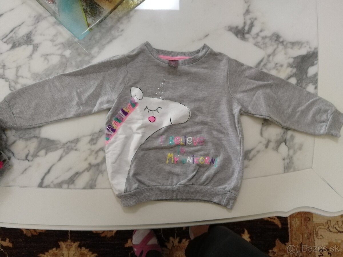 1.mikina s jednorožcom Pepco raz oblečená, top stav 3 €, veľ. 104