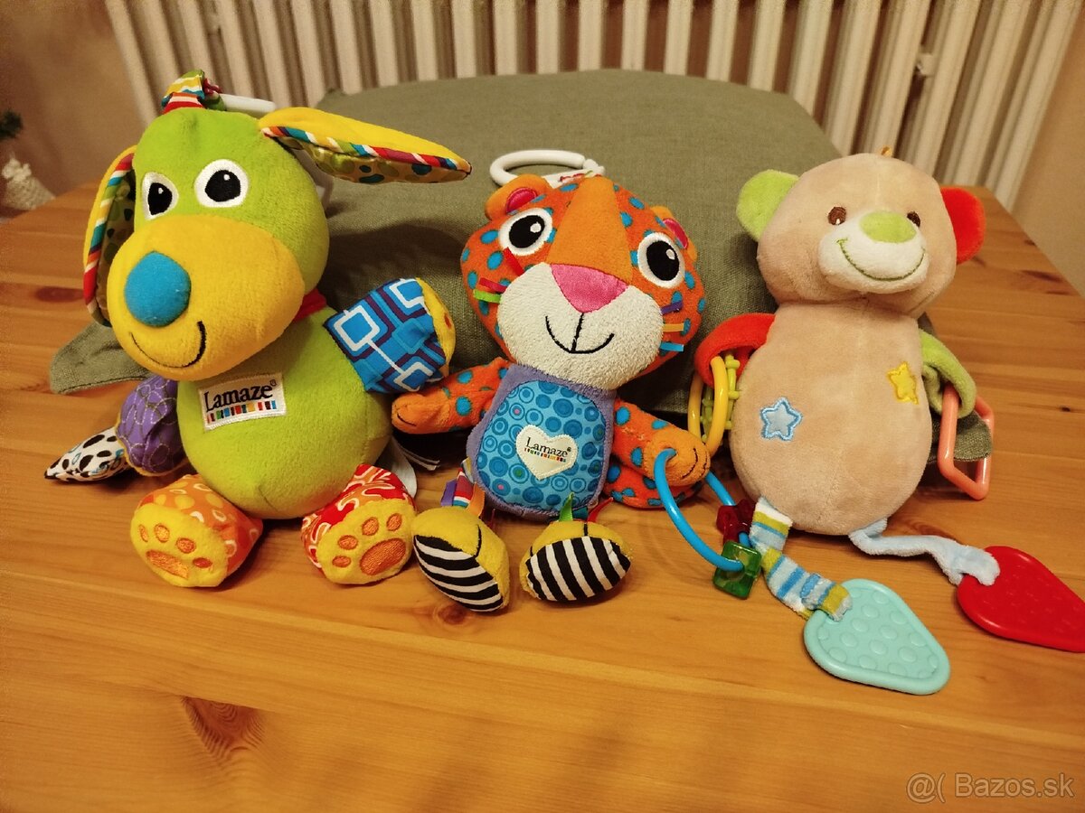 Darujem hrkacie a šušťavé zvieratká, hrkálky a závesnú hračku do kočíka. Veľmi dobrý stav. Osobný odber.