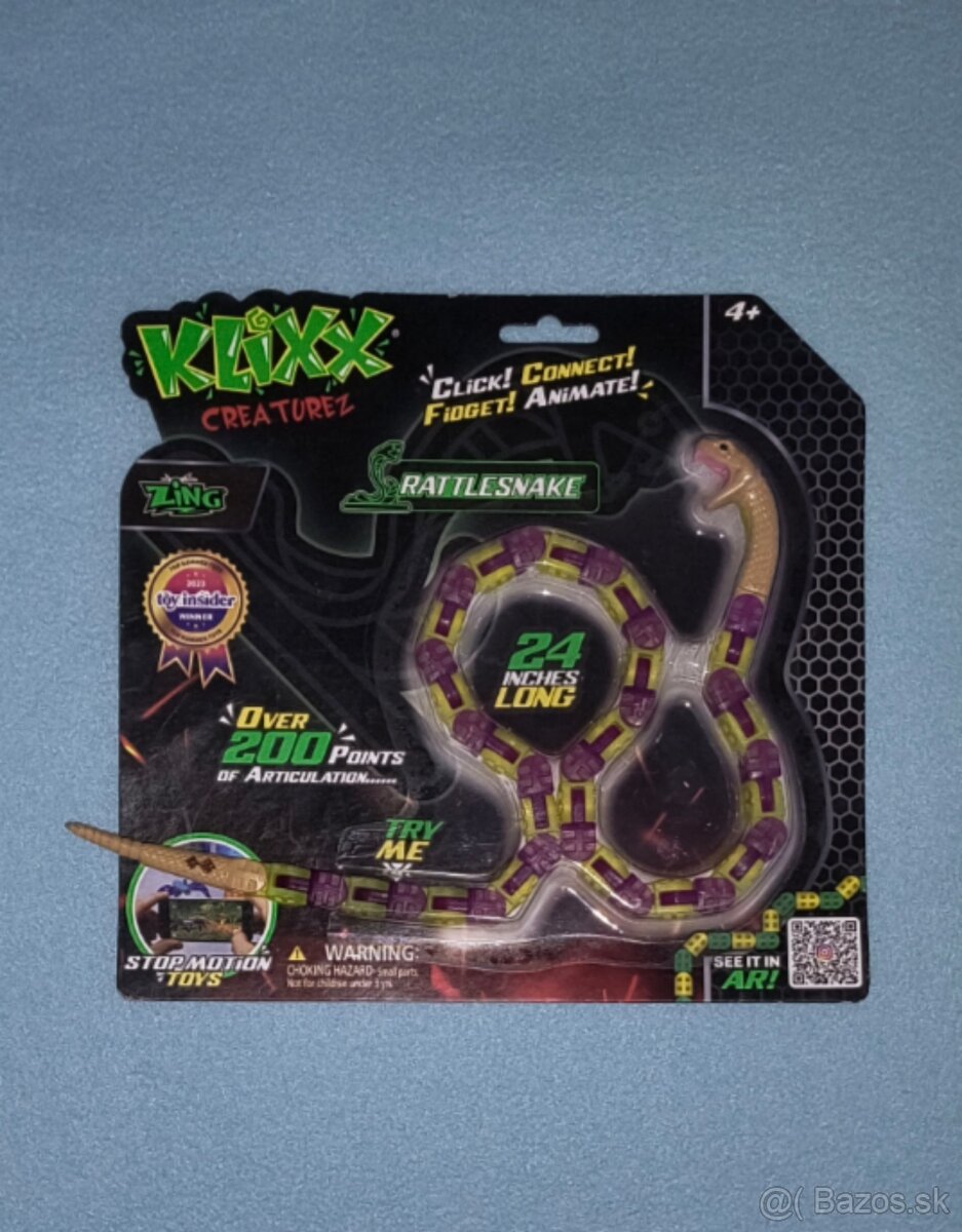 Nový, zabalený had Klixx creaturez, dá sa všelijako ohýbať.