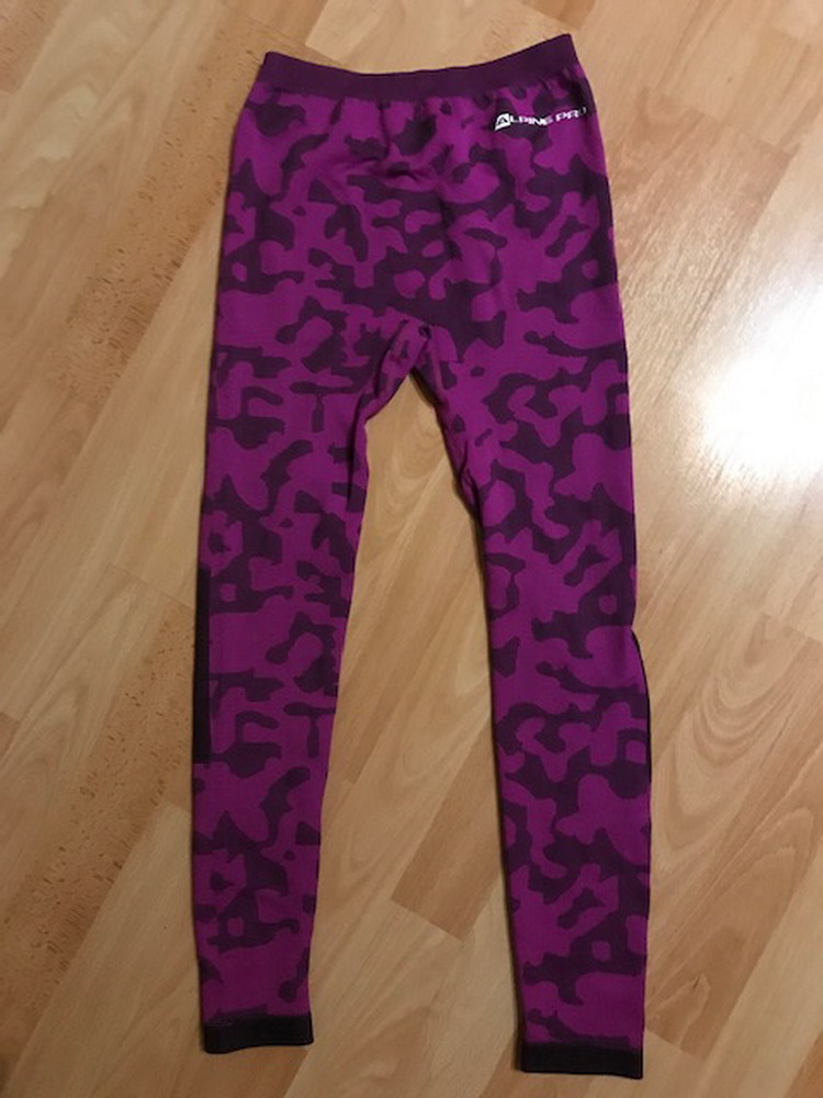 Spodné nohavice (pre chladné zimné dni pod rifle, nohavice) pre dievča značky Alpine Pro vo fuksiovej farbe, veľkosť je uvedená L (zhruba od 140 do 158). Sú vyrobené z príjemného pružného, rýchloschnúceho, hrejivého a príjemne štrukturovaného materiálu - materiál: 67% polyamid, 28% polyester, 5% elastan