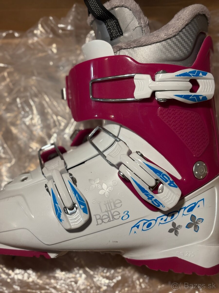 Predam detske lyziarky Nordica ruzovo biele, velkost MP 220, parkrat pouzite, bez poskodeni.