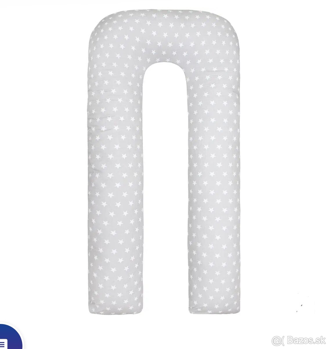 Dojčiaci vankúš – na spanie, tvar podkovy, hypoalergénny, prateľný poťah, materiál obliečky bavlna, materiál výplne duté vlákno, rozmery 80 × 150 cm (Š×D), vzor hviezdy, biela a sivá farba, hmotnosť 1600 g
